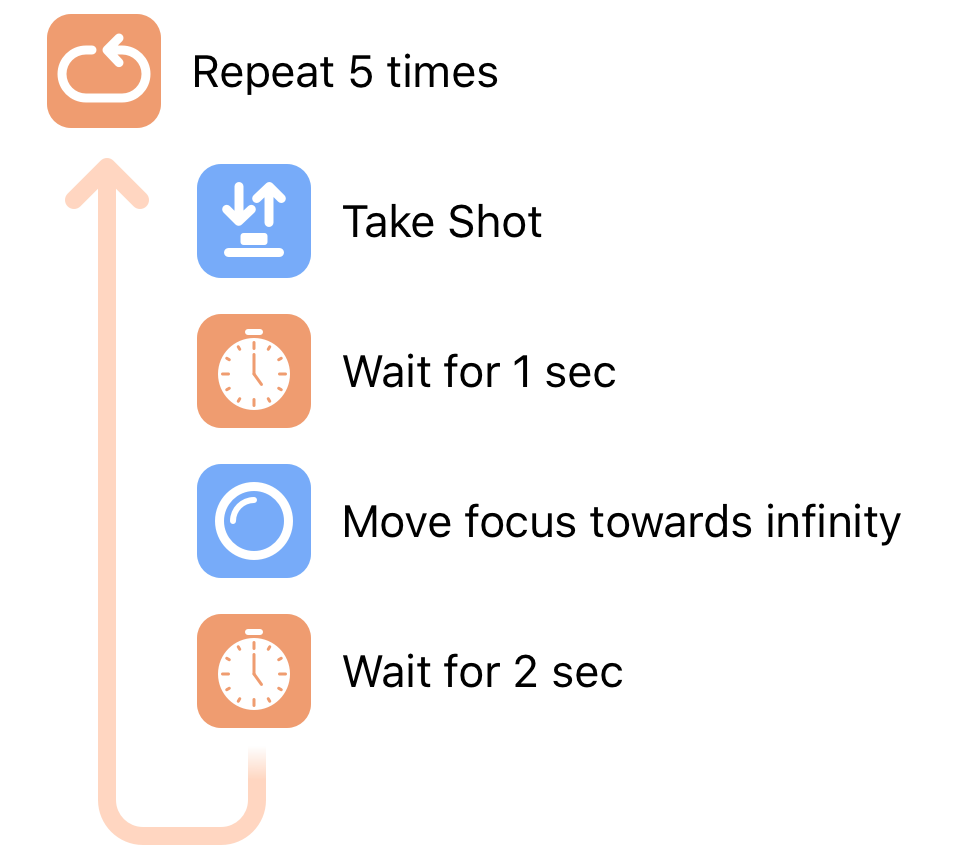 Cascable 3.6 (released in September 2018) introduced two advanced blocks to Recipes: Wait For Input and Move Focus. These blocks are very powerful, but require a more detailed understanding of how they work and how your camera works to get the most effective results.